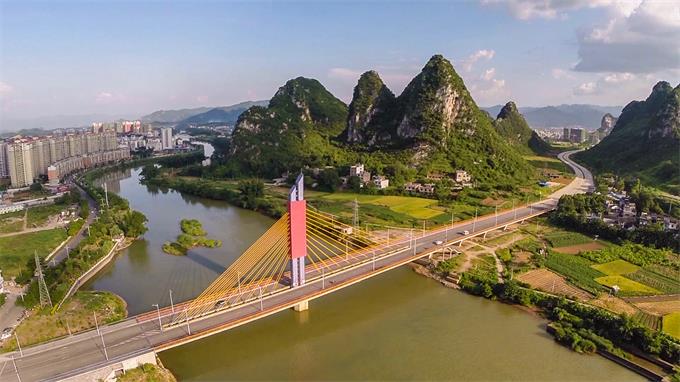 賀州市靈峰大橋工程位于八步區(qū)賀江一橋下游0.9公里處,北岸接靈峰北路,是連接賀江兩岸、緩解城市交通壓力、方便居民的重要通道之一。靈峰大橋設計全長為465.018米,其中南引道長50.448米,北引道長80.570米,引道全長131.018米,橋梁長度為334米,橋面寬度27米,按雙向四車道設計。主橋采用獨塔單索面預應力混凝土展翅箱梁斜拉橋,邊跨跨徑68米,主跨跨徑86米,全長154米。橋面以上塔高51米,全橋設計共有77根樁基、9個承臺、7個墩身、2個橋臺。