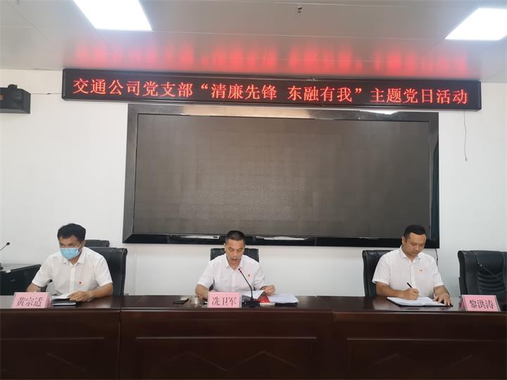 7月28日,交通公司黨支部開展清廉先鋒·東融有我主題黨日活動,公司黨支部約20名黨員參加了活動。主題黨...